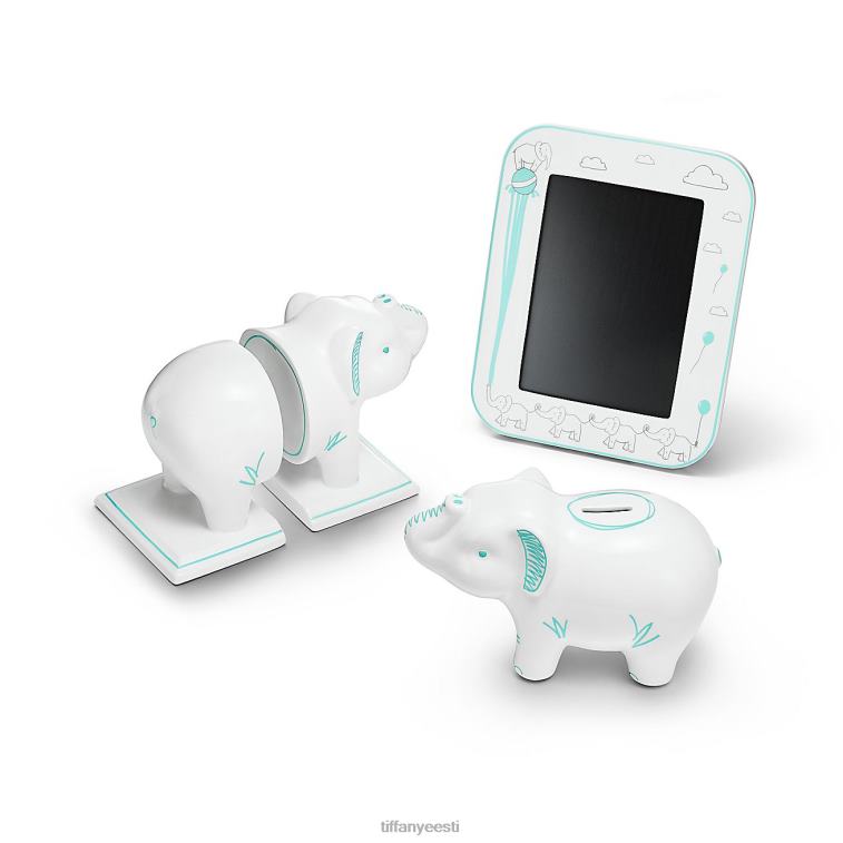 Tiffany beebidisain toovad klassikalistesse mänguasjadesse ja lapsepõlve lemmikutesse moodsa pöörde. mänguline elevandikujundus kaunistab seda luuportselanist raami Tiffany-sinise aktsentidega, mis sobib suurepäraselt koduks kallite peremälestuste jaoks.