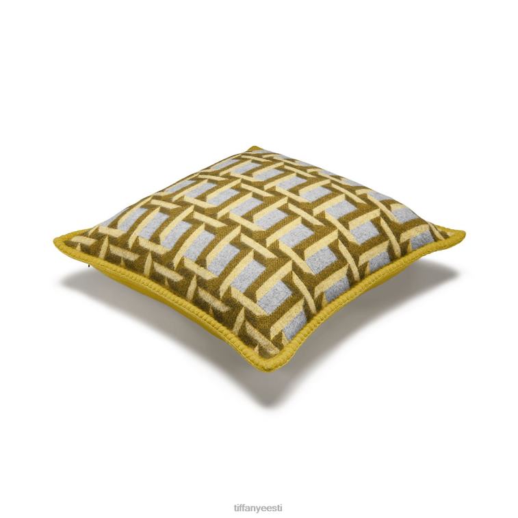Tiffany t kollektsioon on inspireeritud meie lemmikkirjast. sellel värvilisel padjal on meie tunnusmuster vahelduvatest ts-dest. see on asjatundlikult valmistatud kašmiirist ja villast.