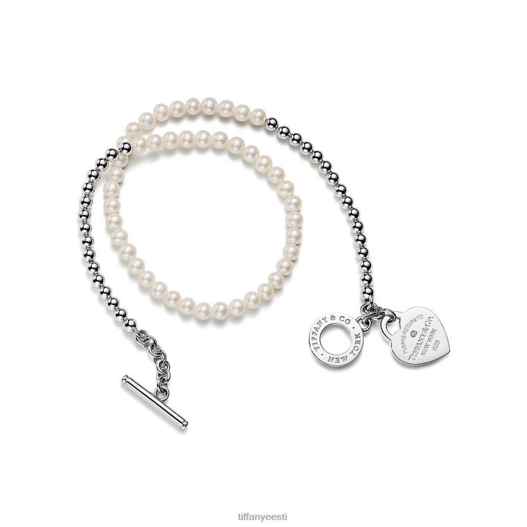 naasta hõbedasse tiffany wrapi helmeste käevõru pärlite ja teemandiga,
