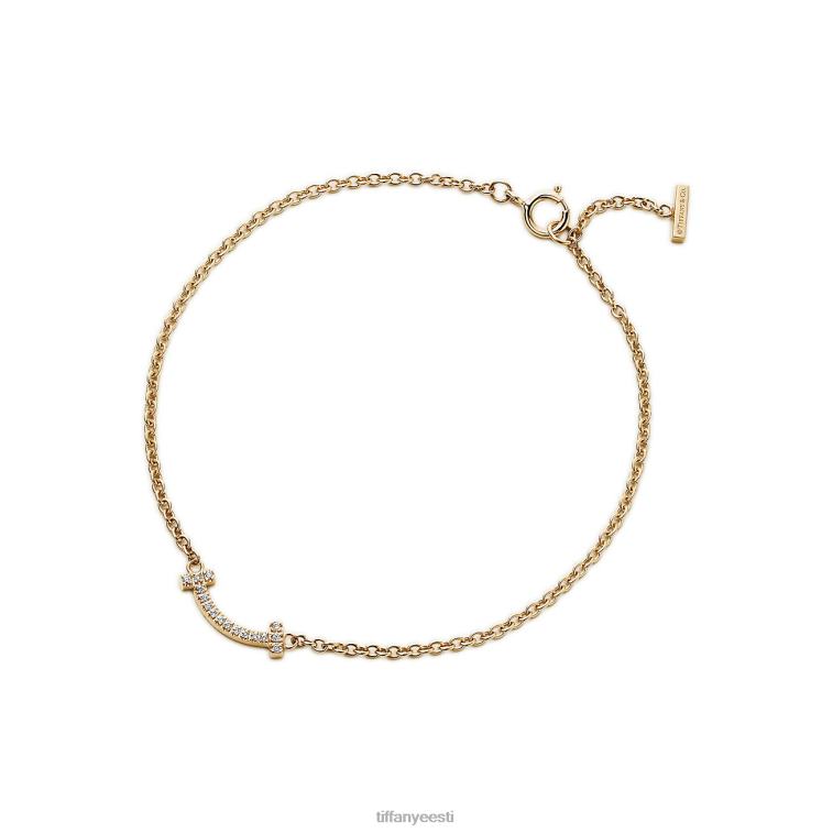 tiffany t naeratuse käevõru 18k roosast kullast teemantidega, keskmine.