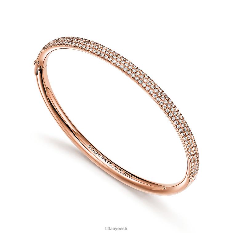 Tiffany metroo kolmerealine hingedega käevõru roosast kullast teemantidega