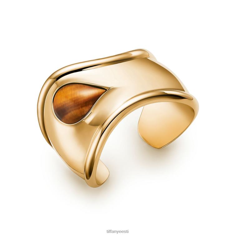 noogutus looduses leiduvale ülevale ilule, Elsa peretti nikerdatud kivist luust kätised on oskuslikult valmistatud käsitöömeistrite poolt, kes nikerdavad ja inkruseerivad iga kivi käsitsi. jõuliselt naiselik ja vaevatu kergusega, murranguline luust manseti disain võeti esmakordselt kasutusele 1970. aastatel. Selle ikoonilise disaini pööre, see 18k kollase kullaga luust mansett austab käsitsi seatud tiigrisilma ilu ja peegeldab disaineri kirge siledate, vormitud pindade vastu.