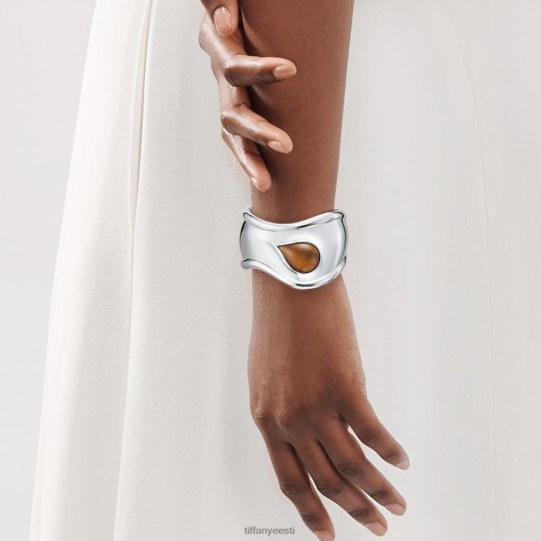Noogutus looduses leiduvale ülevale ilule, elsa peretti kivist nikerdatud luust mansetid on oskuslikult valmistatud käsitöömeistrite poolt, kes nikerdasid ja inkrusteerisid iga kivi käsitsi. jõuliselt naiselik ja vaevatu kergusega, murranguline luust manseti disain võeti esmakordselt kasutusele 1970. aastatel. Selle ikoonilise disaini pööre, see hõbedane luust mansett austab käsitsi asetatud tiigrisilma ilu ja peegeldab disaineri kirge siledate, vormitud pindade vastu.