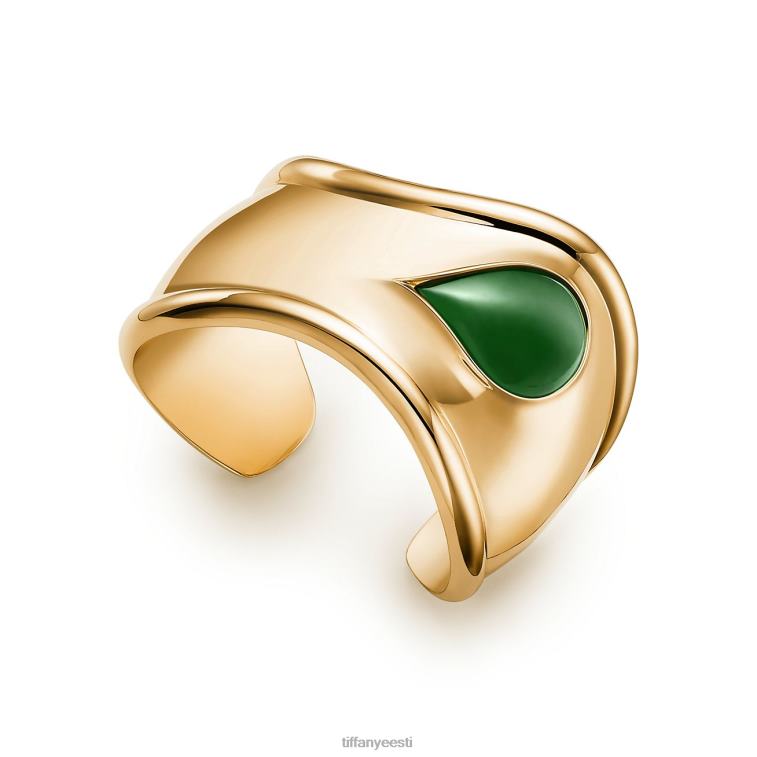 Noogutus looduses leiduvale ülevale ilule, elsa peretti kivist nikerdatud luust mansetid on oskuslikult valmistatud käsitöömeistrite poolt, kes nikerdasid ja inkrusteerisid iga kivi käsitsi. jõuliselt naiselik ja vaevatu kergusega, murranguline luust manseti disain võeti esmakordselt kasutusele 1970. aastatel. Selle ikoonilise disaini pööre, see 18k kullast luust mansett austab käsitsi asetatud rohelise nefriidi ilu ja peegeldab disaineri kirge siledate ja vormitud pindade vastu.