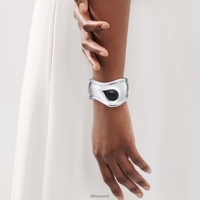 Noogutus looduses leiduvale ülevale ilule, elsa peretti kivist nikerdatud luust mansetid on oskuslikult valmistatud käsitöömeistrite poolt, kes nikerdasid ja inkrusteerisid iga kivi käsitsi. jõuliselt naiselik ja vaevatu kergusega, murranguline luust manseti disain võeti esmakordselt kasutusele 1970. aastatel. Selle ikoonilise disaini pööre, see hõbedane luust mansett austab käsitsi asetatud musta nefriidi ilu ja peegeldab disaineri kirge siledate ja vormitud pindade vastu.