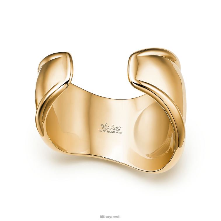 Noogutus looduses leiduvale ülevale ilule, elsa peretti kivist nikerdatud luust mansetid on oskuslikult valmistatud käsitöömeistrite poolt, kes nikerdasid ja inkrusteerisid iga kivi käsitsi. jõuliselt naiselik ja vaevatu kergusega, murranguline luust manseti disain võeti esmakordselt kasutusele 1970. aastatel. Selle ikoonilise disaini pööre, see 18k kullast luust mansett austab käsitsi asetatud valge nefriidi ilu ja peegeldab disaineri kirge siledate ja vormitud pindade vastu.