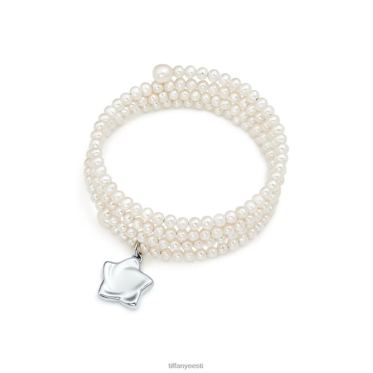 elsa peretti kolmerealine pärlitest käevõru hõbedase tähe võluga , keskmine.