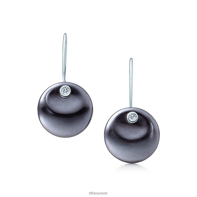 elsa peretti ümarad kõrvarõngad hematiidist ja hõbedast teemantidega.
