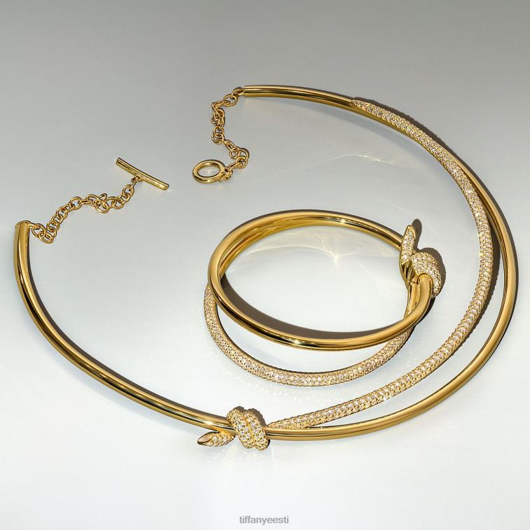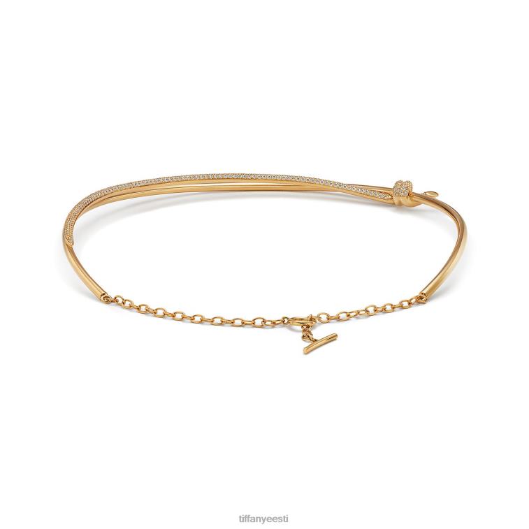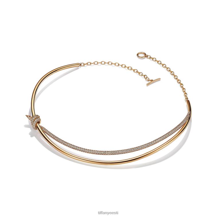 Tiffany sõlme tunnusmotiivi põimunud otsad sümboliseerivad inimestevaheliste sidemete jõudu. Tasakaalustades tugevust ja elegantsi, on iga tiffany sõlme disain keerukas meisterlikkuse saavutus. see kaelakee on valmistatud kollasest kullast ja sillutatud teemantidest ning seejärel käsitsi poleeritud, et saada sära. iga ümmargune briljantne teemant, mis on spetsiaalselt valitud vastama Tiffany kõrgetele standarditele, on käsitsi seatud täpse nurga alla, et maksimeerida sära. maksimaalse mõju saavutamiseks kandke seda kaelakeed eraldi.