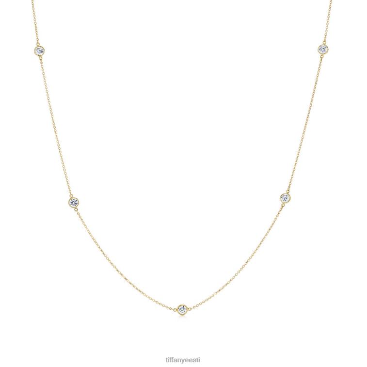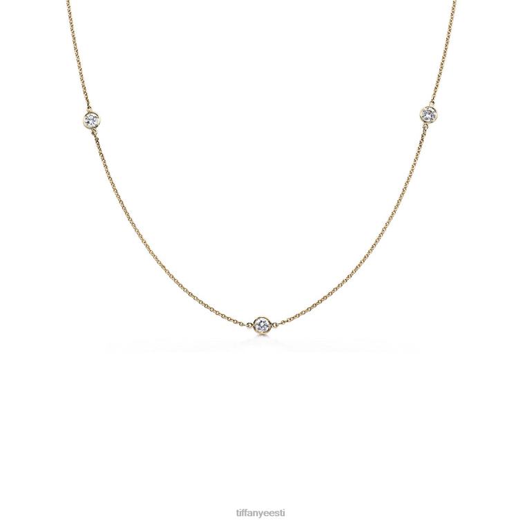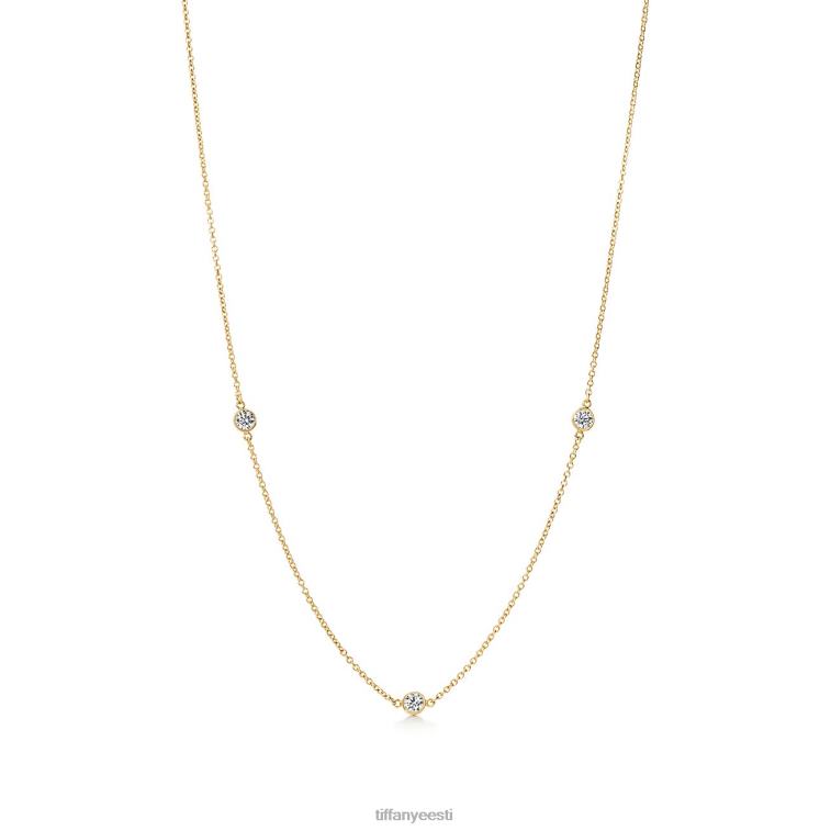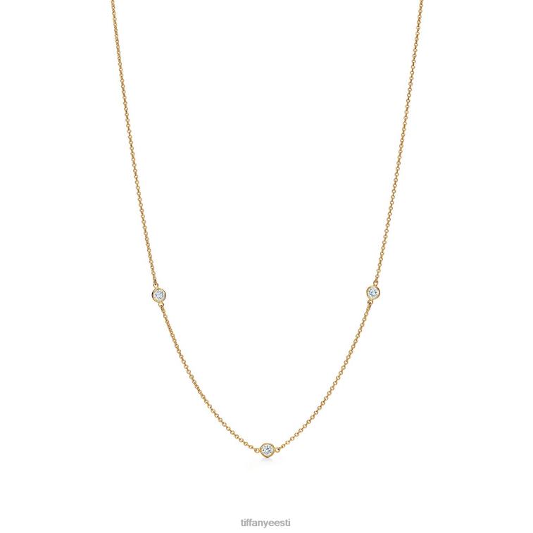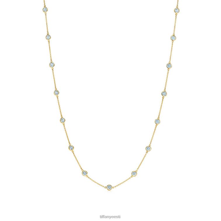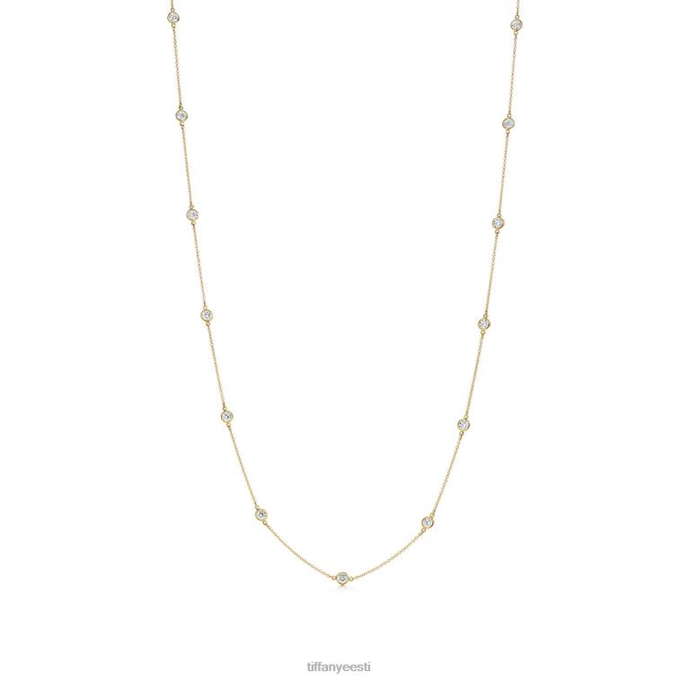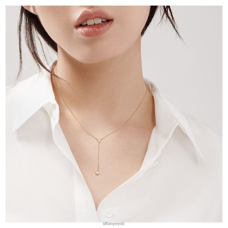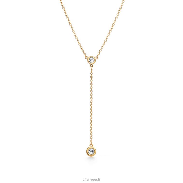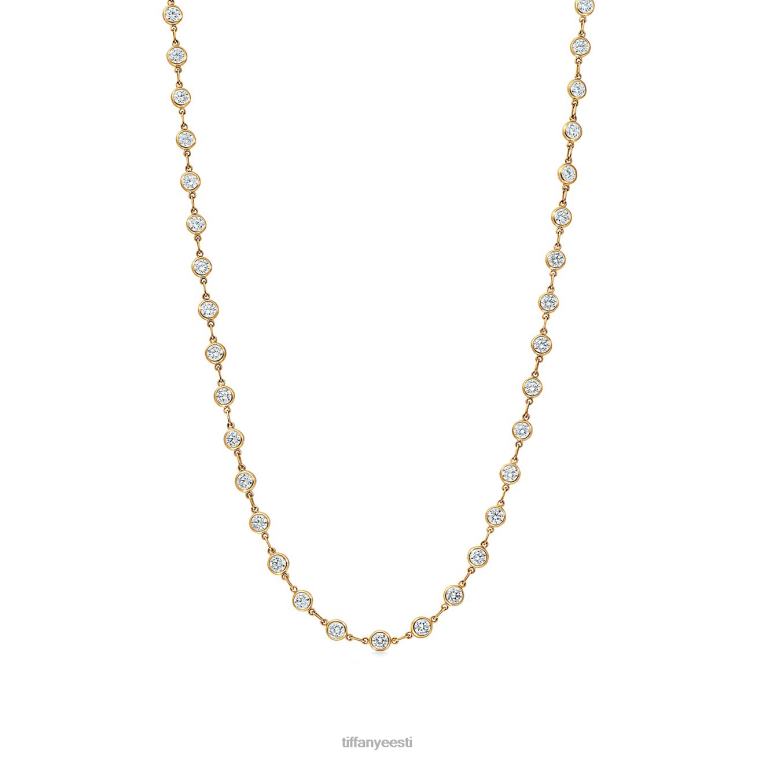 Tiffany ümmargused teemandid püüavad valgust ja panevad selle tantsima. 18k kullast kaelakee kahe ümmarguse briljantse teemandiga. 16'' pikk. karaat kogukaal ,19. originaalkujundused, mille autoriõigused on elsa peretti.