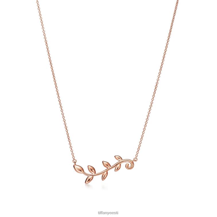 ilus austusavaldus oliivioksale, rahu ja külluse sümbolile. ripats 18k roosast kullast. 18-tollise keti peal. originaalkujundused, mille autoriõigused on paloma picasso.