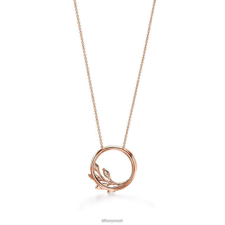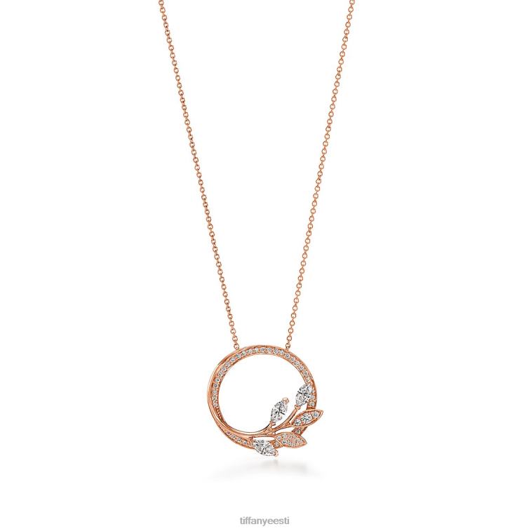 18k roosast kullast Tiffany victoria teemantviinapuust ringi ripats, suur.