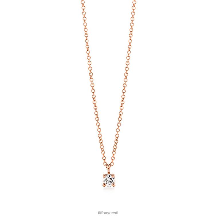 Legendaarsed teemandid ülima lõike, värvi, selguse ja säraga. 18k roosast kullast ripats ümmarguse briljantse teemandiga. 16-tollise keti peal. karaat kaal .12.