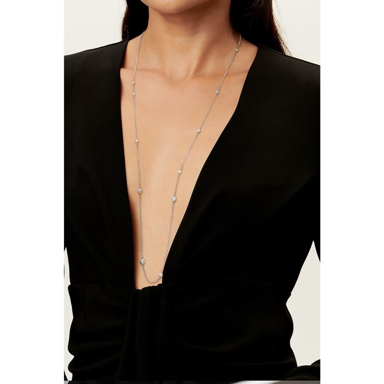 Klassikalise teemantkaelakee taasleiutamine õuekollektsiooni elsa peretti teemantidel on raamiga kinnitatud kivid, mis säravad vastu nahka. piki ketti puistatud pimestavad teemandid loovad selle vapustava disaini. hind võib varieeruda olenevalt värvist, kaalust karaatides ja saadavusest.