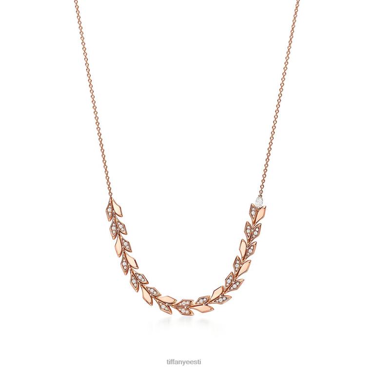 Loodusmaailmast inspireeritud tiffany victoria disainid jäädvustavad lillede, viinapuude ja lehtede sujuvat liikumist koos asjatundlikult lõigatud teemantide seguga. see silmapaistev ripats on valmistatud 18k roosast kullast, millel on kontrastselt poleeritud ja liivapritsiga töödeldud viimistlus. ümmargused briljantsed ja marquise teemandid mängivad valgust välja ja rõhutavad viinapuu motiivi. kui liiga palju teemante pole kunagi piisavalt, on tiffany victoria parim viis särada. kandke omaette, et saada dramaatiline mulje või eri pikkusega ripatsidega kiht.