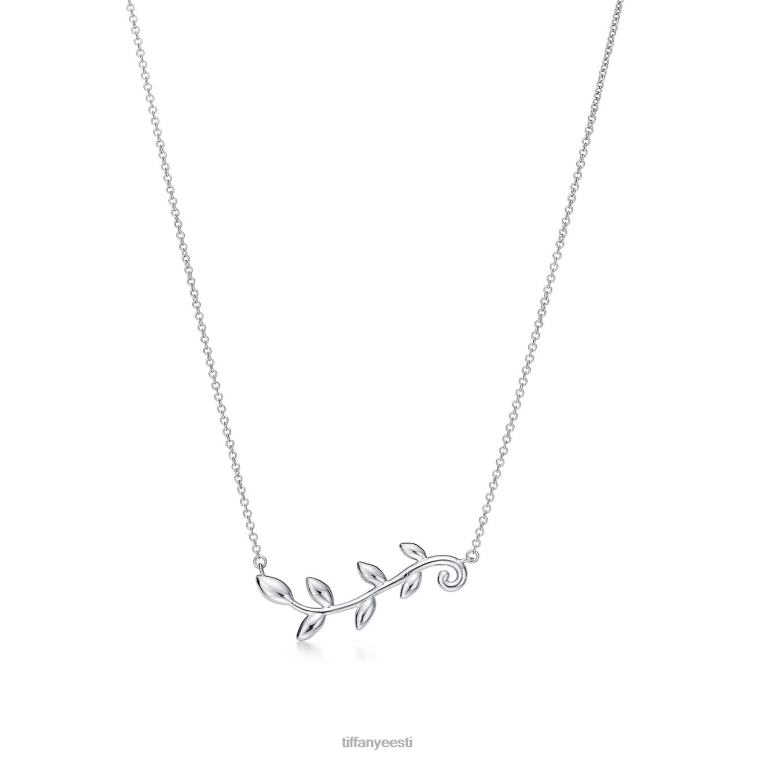 ilus austusavaldus oliivioksale, rahu ja külluse sümbolile. hõbedast ripats, 18'' pikk. originaalkujundused, mille autoriõigused on paloma picasso.