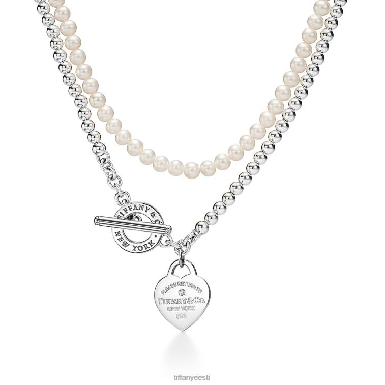tagasi tiffany wrapi hõbedasse pärlite ja teemandiga kaelakee,