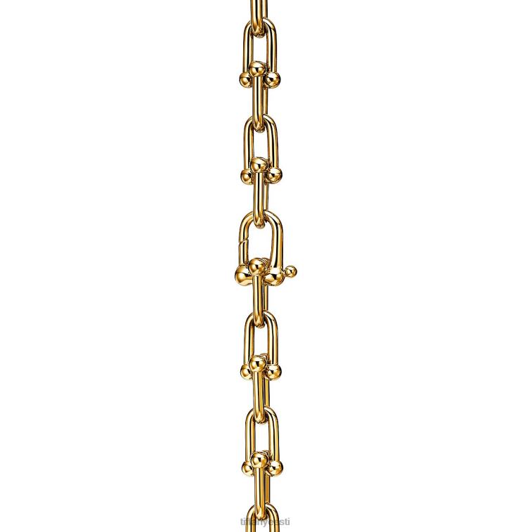 Tiffany hardwear on inspireeritud New York City suhtumisest ja energiast. sellel julgel 18k kullast kaelakeel on kollektsioonile iseloomulikud mõõteriistade lingid lõpuproportsioonides. vahelduvad lingid on maksimaalse sära saavutamiseks hoolikalt seatud ümmarguste briljantsete teemantidega kärgstruktuuris. Oma silmapaistva tekstuuride koosmõjuga ei saa see disain jätta tähelepanu pööramata.