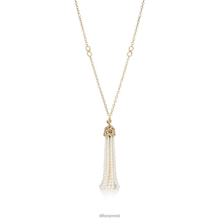 ilus austusavaldus oliivioksale, rahu ja külluse sümbolile. 18k kullast kaelakee magevees kasvatatud pärlite ja ümarate briljantsete teemantidega. pärlid, 2,75-5,5 mm. suurus suur, 27,5'' pikk. originaalkujundused, mille autoriõigused on paloma picasso.