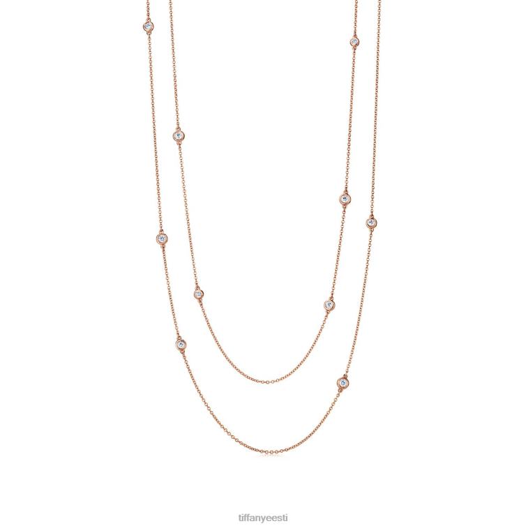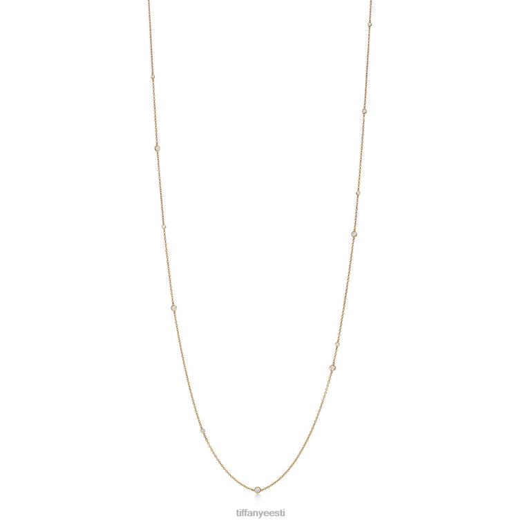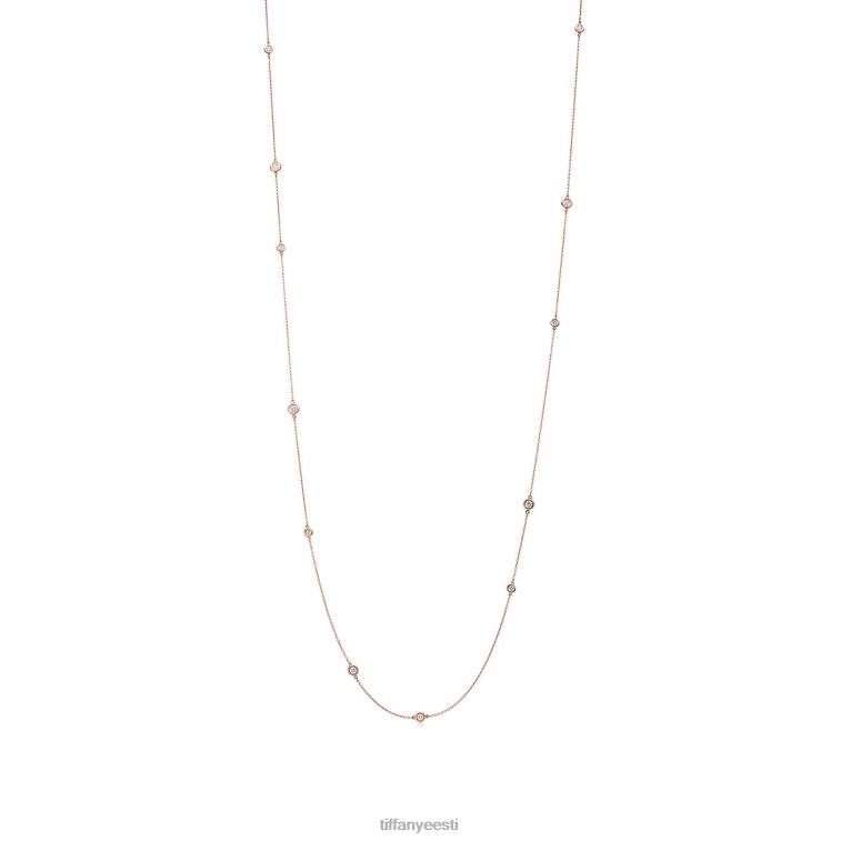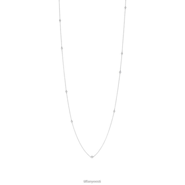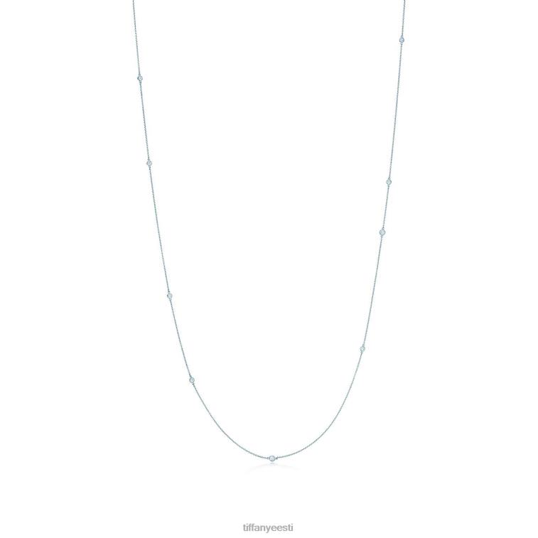 Tiffany ümarad teemandid püüavad valgust ja panevad selle tantsima. puista hõbedast kaelakee üheksa ümmarguse briljantse teemantiga. 32'' pikk. karaat kogukaal ,31. originaalkujundused, mille autoriõigused on elsa peretti.