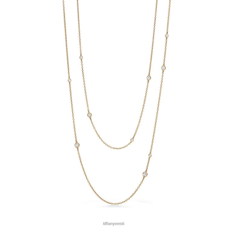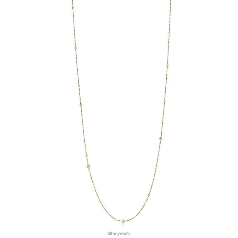 Tiffany ümmargused teemandid püüavad valgust ja panevad selle tantsima. puistake 18k kullast kaelakee 12 ümmarguse briljantse teemantiga. 36'' pikk. karaat kogukaal 1,21. originaalkujundused on autoriõigusega kaitstud elsa peretti.