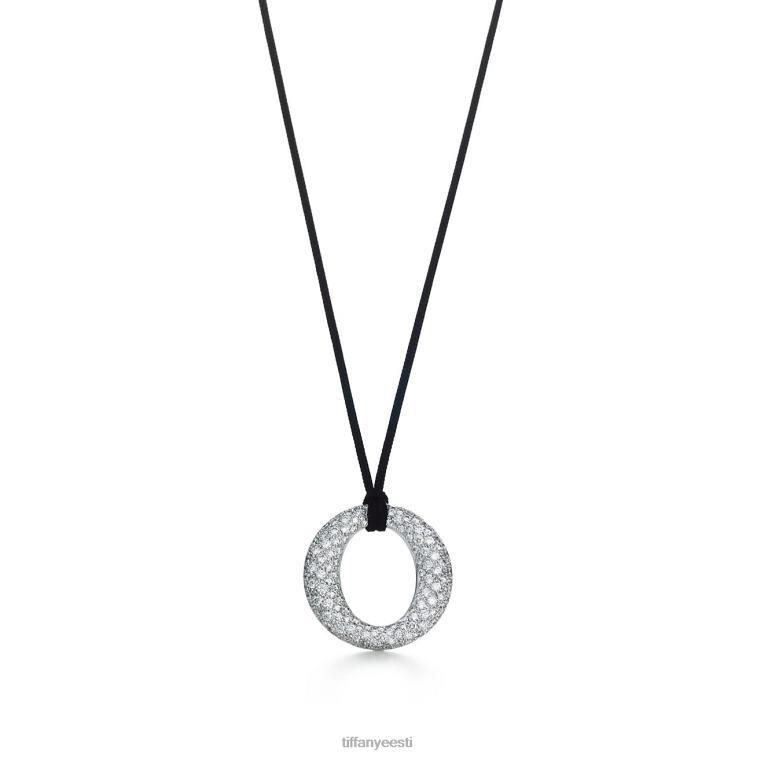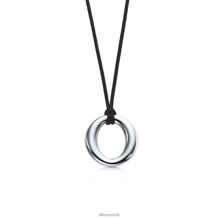 Peretti elliptiline vorm kujutab endast intrigeerivat kuju. hõbedast ripats. keskmine suurus, 18'' mustal siidnööril. originaalkujunduste autoriõigused on elsa peretti.