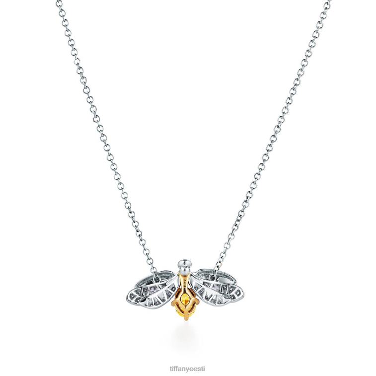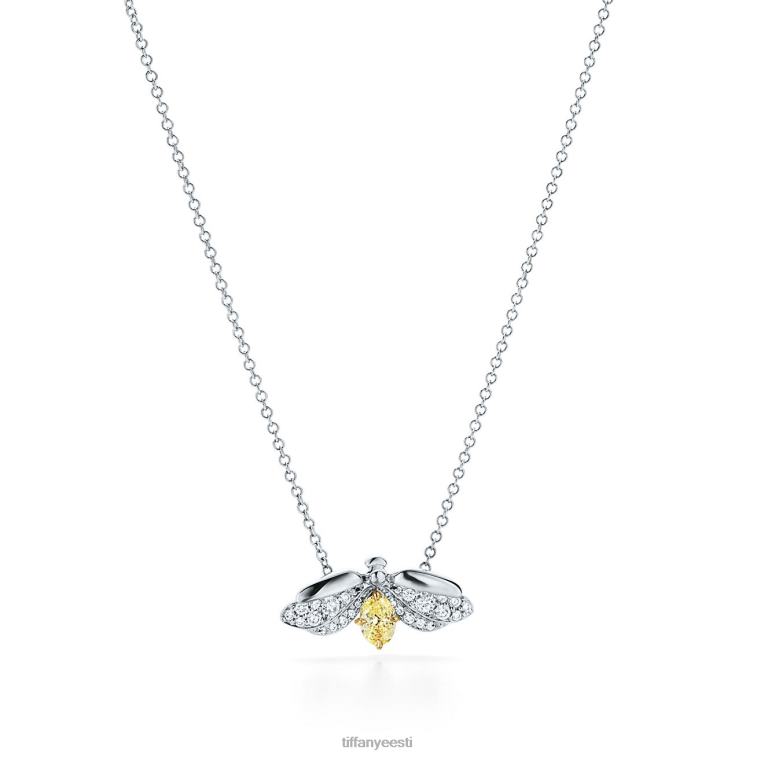 tiffany paberlilled plaatinast kollase teemandiga tulikärbse ripats.