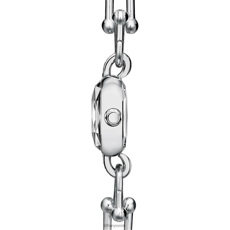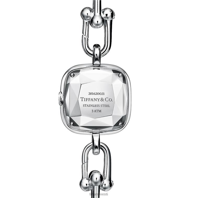 Tiffany vastupidavad käekellad on sama julged kui viimistletud. Šveitsis käsitööna valminud kelladel on ikoonilised mõõdiku lingid ja briljantsed teemandid. sellel hõbedast ja terasest kellal on teemandid ja hõbedane sihverplaat. peidetud lukk loob voolujoonelise disaini, lihvitud safiirklaasist kristall aga kutsub esile legendaarse Tiffany teemandi ainulaadse kuju. see annab kauni välimuse, kui seda kantakse eraldi või Tiffany kõvakattega käevõrudega.