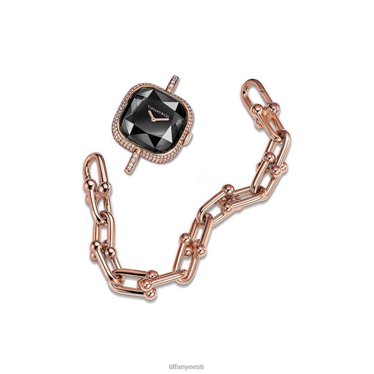 tiffany hardwear käekell roosast kullast, sillutusteemantide ja musta lakiga