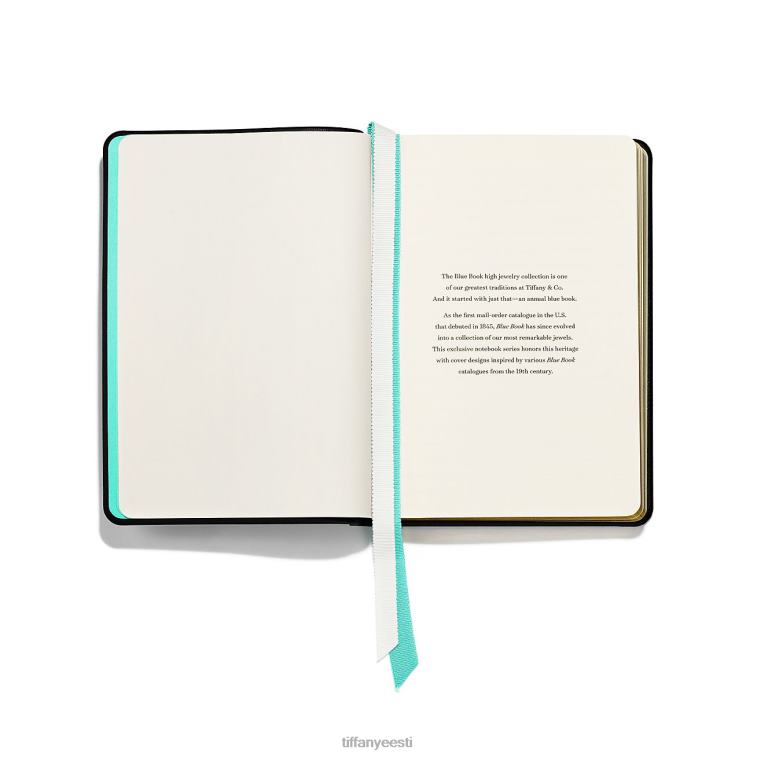 See must nahkköites märkmik on inspireeritud maja sinistest 1890. aastatest pärit raamatukaantest ning sellel on kullatud leheservad, metallikfoolium, tiffany-sinised aktsendid ja täidispaelad. tühjad ja joonelised lehed pakuvad märkmete tegemiseks kahte lõuendit.