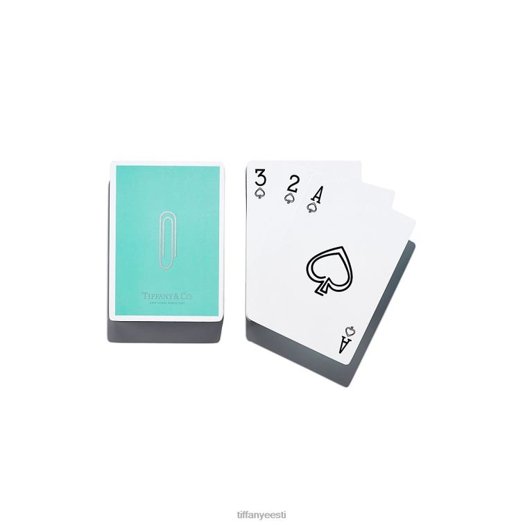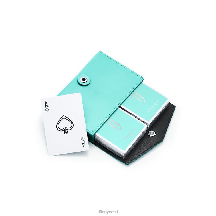 kirjaklambriga mängukaardid Tiffany sinises nahast kotis.