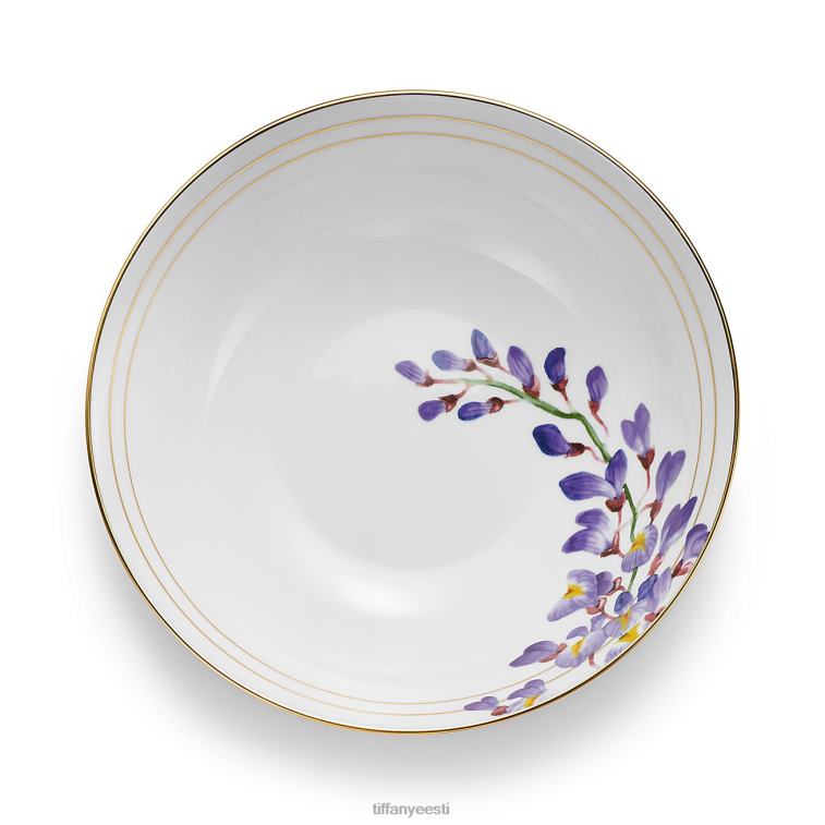 Tiffany Wisteria kollektsioon on pärit Tiffany arhiivide wisteriast inspireeritud meistriteostest. Seda motiivi ümber kujundades annavad käsitsi maalitud lillepildid igale disainile ajatu naiseliku elegantsi tunde. Sellel Limoges'i portselanist valmistatud serveerimiskausil on käsitsi maalitud kuldne ääris, mis tõstab laua katmise kõrgemale.