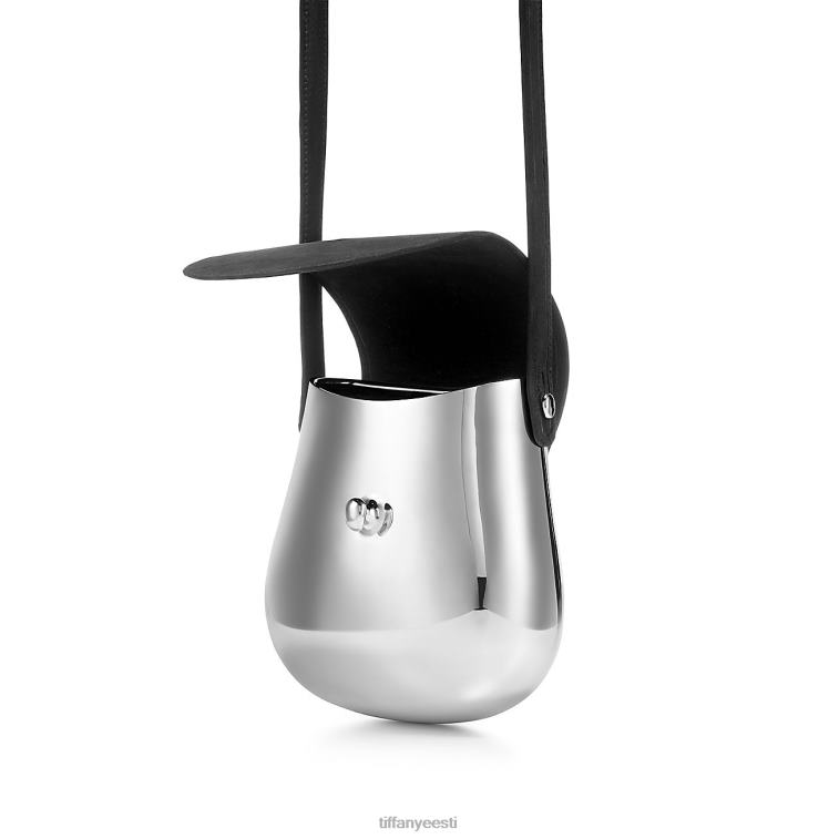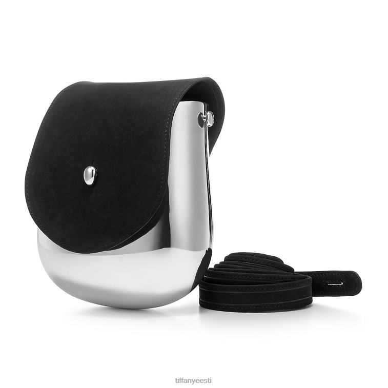 hõbedast musta seemisnahaga kott. 4,5 tolli x 2,5 tolli x 5 tolli. originaalkujundused, mille autoriõigused on elsa peretti.