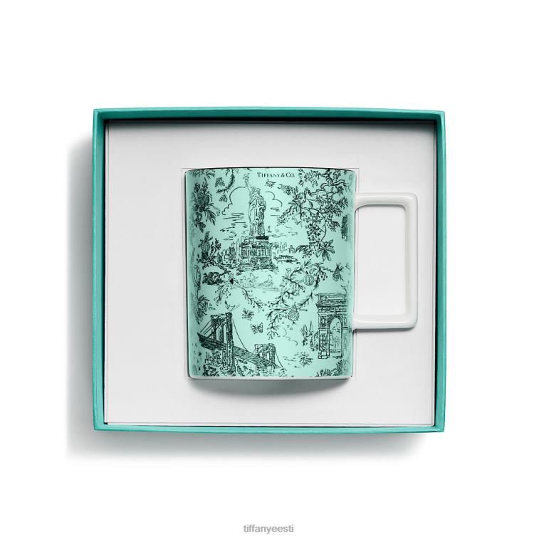 Tiffany toile disain on kummaline austusavaldus Tiffany kodulinnale ja selle pärandile. mänguline, kuid elegantne kunstiteos on inspireeritud New Yorgi linna illustratsioonist Tiffany arhiividest. brooklyni sild kohtub kivil linnuga; vabadussammas seguneb tiffany & co-ga. teemant. sellel Tiffany sinisel kruusil on viimistletud mustriga käsitsi maalitud ääris. siduge kruus Tiffany toile taldrikuga, et luua oma komplekt.