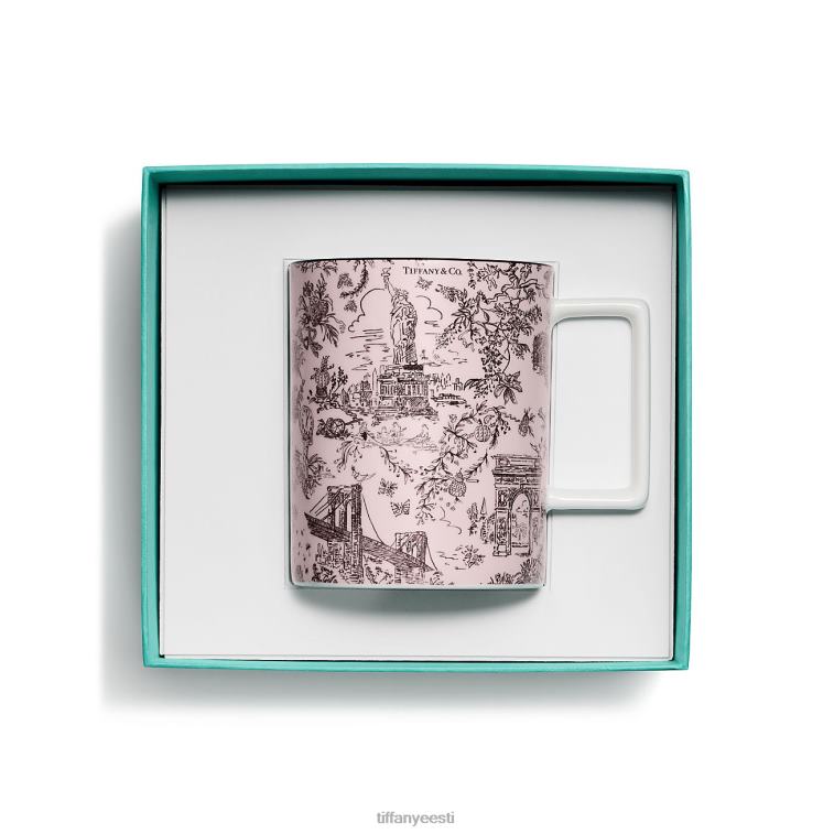 Tiffany toile disain on kummaline austusavaldus Tiffany kodulinnale ja selle pärandile. mänguline, kuid elegantne kunstiteos on inspireeritud New Yorgi linna illustratsioonist Tiffany arhiividest. brooklyni sild kohtub kivil linnuga; vabadussammas seguneb tiffany & co-ga. teemant. sellel morganiidivärvi kruusil on viimistletud mustriga käsitsi maalitud ääris. oma komplekti loomiseks siduge kruus Tiffany toile taldrikuga.
