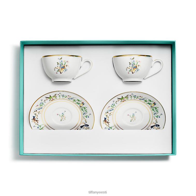 tiffany audubon teetass ja portselanist alustass, kaheosaline komplekt