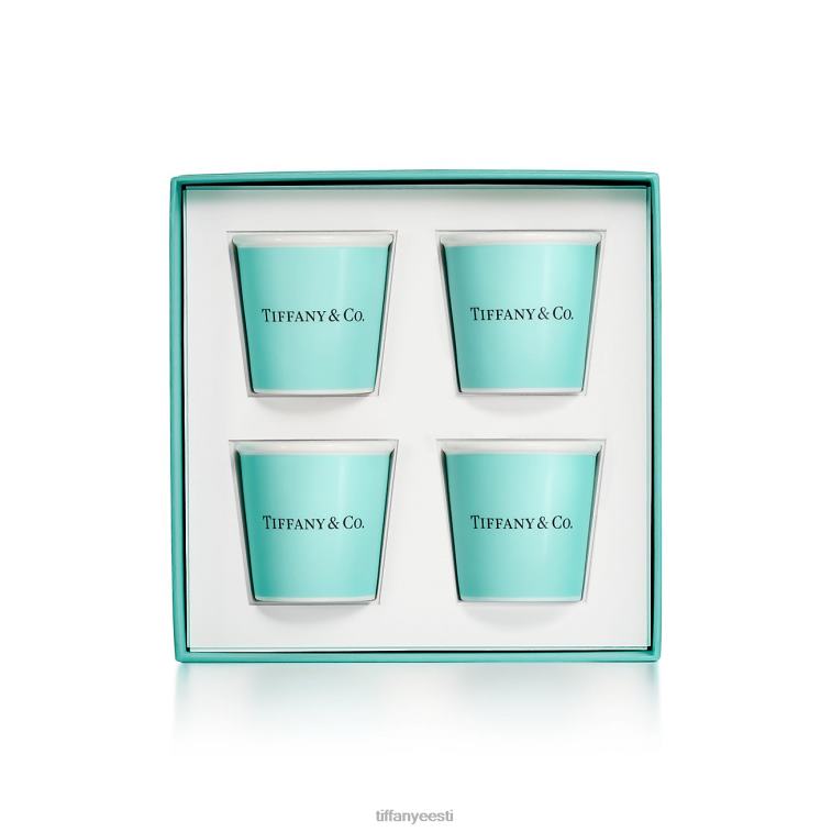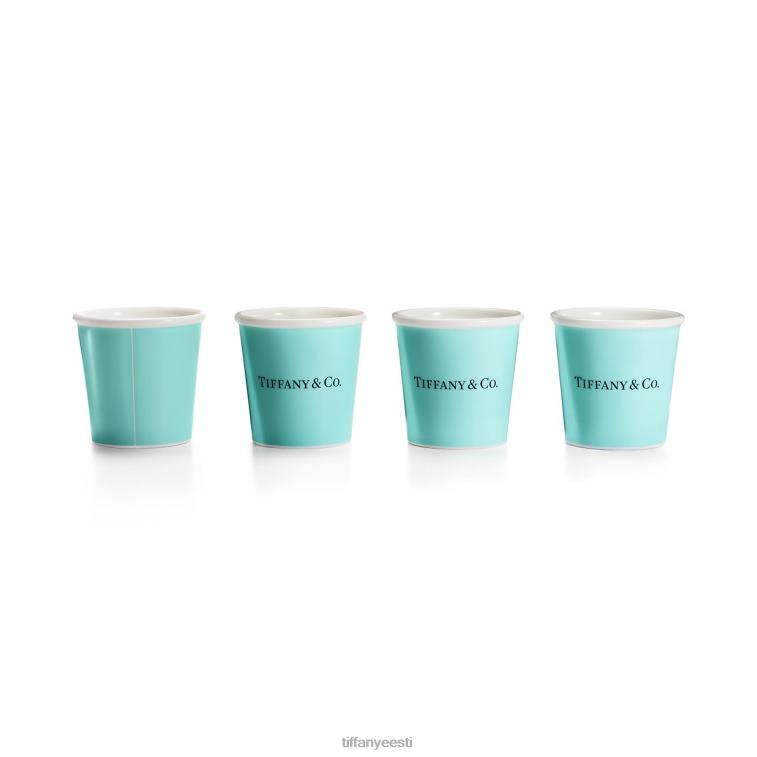 Tiffany käsitöölised muudavad tarbeesemed käsitööna valminud kunstiteosteks. See moodne neljast espressotassist koosnev komplekt on valmistatud luuportselanist ja sellel on meie ikooniline Tiffany sinine toon.