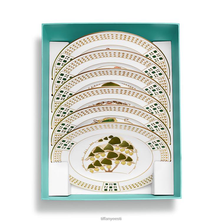 tiffany marjadest valmistatud õhtusöögitaldrikud luuportselanist, kuueosaline komplekt