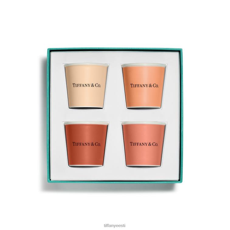 Tiffany käsitöölised muudavad tarbeesemed käsitööna valminud kunstiteosteks. See moodsas luuportselanis valmistatud komplekt on inspireeritud paberist kohvitassidest, mida kasutatakse ainult ettevõttes tiffany & co. kauplustes üle maailma. sellel neljast espressotassi komplektil on neli erinevat oranži tooni, mis loovad koos kasutamisel kauni ombre-efekti.