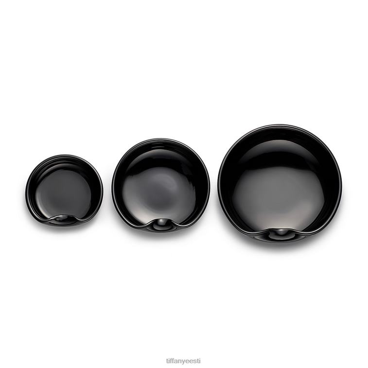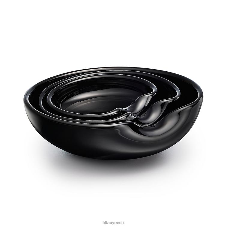 elsa peretti pöidlajäljega nõud mustas veneetsia klaasist, kolmeosaline komplekt