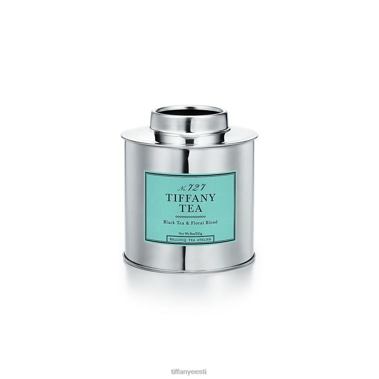 - nr. 727 tiffany tee eksklusiivne must tee ja lilleline segu Tiffany sinise märgistusega plekkpurgis