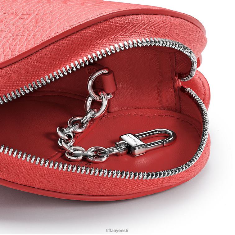 Tiffany aksessuaarid, mis on inspireeritud maja ühest omanäolisemast disainist, on valmistatud elastsest nahast ja kaunistatud detailidega, mis viivad meie ikooniliste ehete poole. sellele mängulisele mündiümbrisele on reljeefne meie tunnus südamemotiiv ja sellel on noaservaga metallist tõmblukk. sisetasku hoiab hädavajalikud asjad korras ning eemaldatav rihm võimaldab teil valida, kas kanda seda randmel või panna see käekotti.