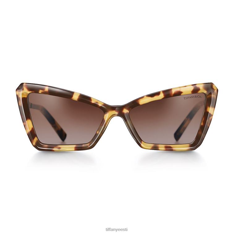 need tiffany & co. päikeseprillidel on elegantsed lihvitud klaasid, mille kuju ja värvid on inspireeritud meie legendaarsetest vääriskividest. Kaasaegne ja keerukas stiil on kujundatud pruunide kassisilma läätsede ja kollase kilpkonnaatsetaadiga.