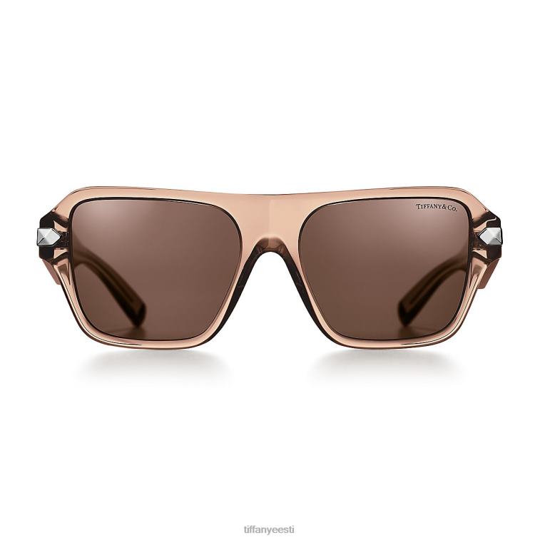need tiffany & co. päikeseprillidel on elegantsed lihvitud klaasid, mille kuju ja värvid on inspireeritud meie legendaarsetest vääriskividest. Kaasaegne ja keerukas stiil on kujundatud helepruunide kandiliste läätsede ja šampanjatsetaadiga.