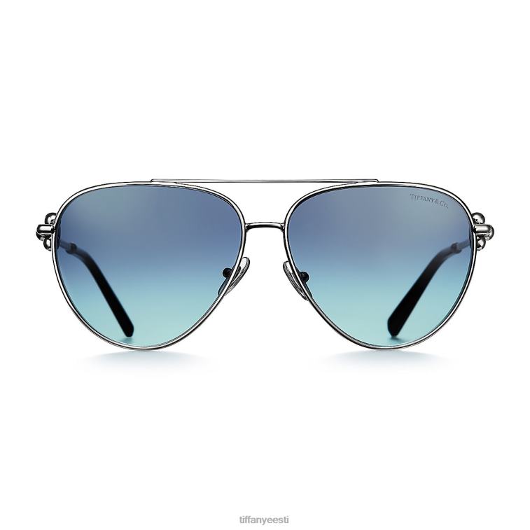 tiffany hardwear on inspireeritud new york City suhtumisest ja energiast. Ehtekollektsiooni määratlevate disainikoodide põhjal on nendel päikeseprillidel julge aktsendiga signatuurmõõtur. graafilised ja ootamatud, raamid on hoolikalt valmistatud hõbedase metalli ja tiffany siniste läätsedega.