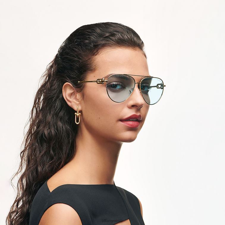 Tiffany hardwear on inspireeritud new york City suhtumisest ja energiast. Ehtekollektsiooni määratlevate disainikoodide põhjal on nendel päikeseprillidel julge aktsendiga signatuurmõõtur. graafilised ja ootamatud, raamid on hoolikalt viimistletud kahvatukollase metalli ja tiffany siniste läätsedega.