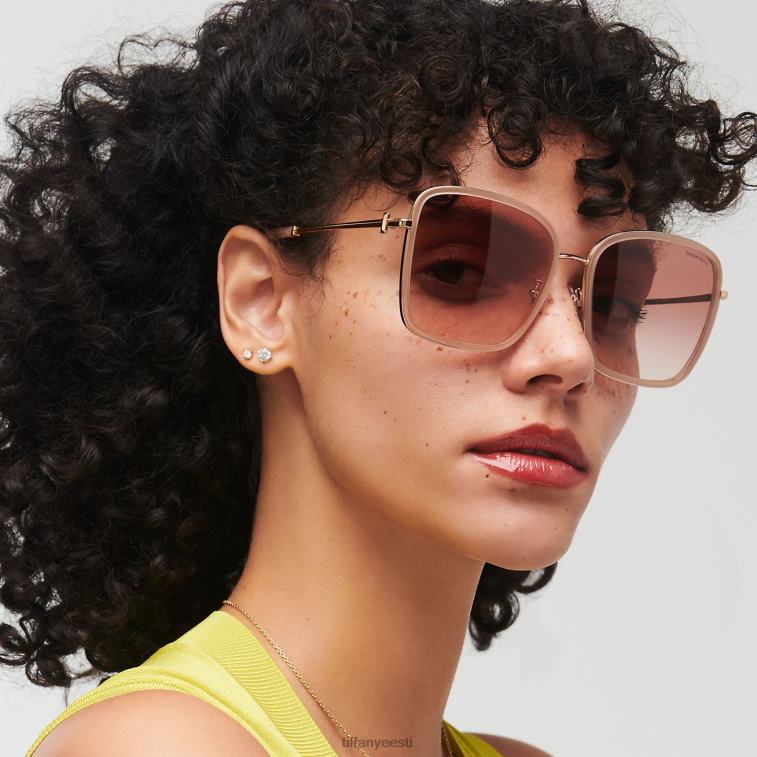 Tiffany t kollektsiooni iseloomustab klanitud t-motiiv, mis on inspireeritud meie lemmikkirjast. ülisuurtel ruudukujulistel päikeseprillidel on kaasaegne vimka kahvatu kullavärvi metallist kaldjoonelise t-aktsentiga ning roosad gradientläätsed, millel on nude opaalääre ja veidi tiffanysinist.