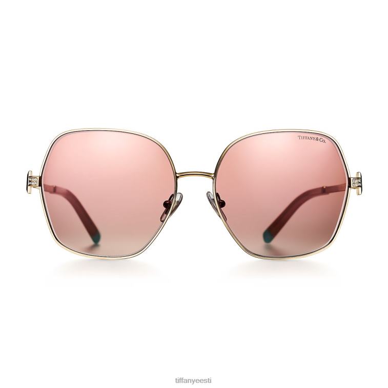 tiffany t päikeseprillid kahvatukollasest metallist roosade peegelklaasidega