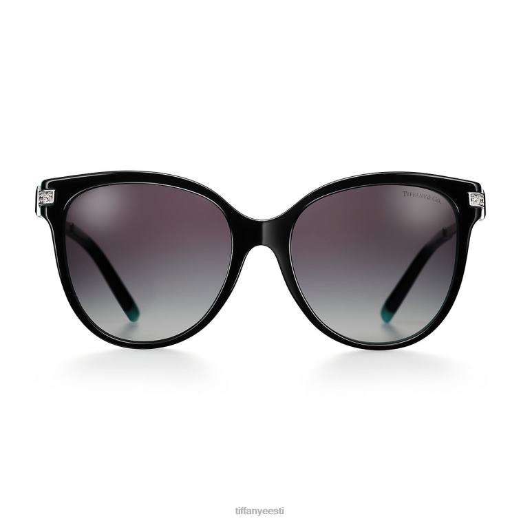 Tiffany t kollektsiooni määratleb elegantne t-motiiv – signatuurmaja kood. Nendel päikeseprillidel on iseloomulik t-kujuline metallist aktsent templitel, mis on kujundatud kaldserva ja austria kristallidega. graafilised ja silmatorkavad klassikalised padjakujulised raamid on täpselt viimistletud musta atsetaadiga koos gradienthallide läätsedega.