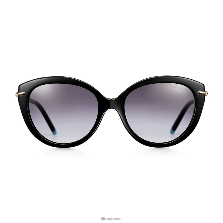 Tiffany hardwear on inspireeritud New York City suhtumisest ja energiast. Ehtekollektsiooni määratlevatest disainikoodidest lähtudes on nendel kassisilmakujulistel päikeseprillidel julge aktsendiga signatuurmõõtur. graafiline ja ootamatu, see stiil on täpselt kujundatud musta atsetaadi, gradienthallide läätsede ja tiffany sinise puudutusega.